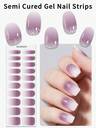 Beauty Sticker 16 Finger Semi-Cured Gel Strips, Pink Cherry Blossom Gradient, Long Lasting, Quick Shaping, Full Nail Wraps For Women And Girls, Comes With 1 Nail File For Music Festivals Dating Parties Traveling Quick Manicure Nail Stickers DIY
