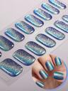 16pcs Clear Semi Cured Gel Nail Strips, Nude Holographic Glitter Self-Adhesive Gel Nail Full Wraps, Chip Resistant, Easy To Manicure For Women's Everyday DIY Nail Art