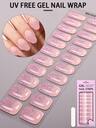 16pcs Pink Semi Cured Gel Nail Strips, Laser Glitter Gradient Self-Adhesive Gel Nail Full Wraps, Easy Manicure, Salon Quality, Nail Stickers For Ladies Home DIY