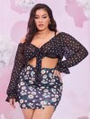 SHEIN Unity Plus Off Shoulder Floral Print Ruffle Trim Lantern Sleeve Jumpsuit