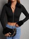SHEIN EZwear Women's Autumn New Black PU Loose Jacket, Dropped Shoulder Zipper PU Short Leather Jacket, Suitable For Street Wear