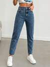 SHEIN PETITE Women Front Button Pocket Simple Casual Skinny Denim Jeans