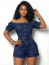 BamGleam Women's Front Button Strap Denim Jumpsuit