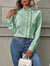 Franclia Fashionable Minimalist V-Neck Long Sleeve Ruffle Trim Fitted Office Shirt