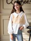 Young Girl Floral Embroidery Peter Pan Collar Long Sleeve Shirt, Back To School Season