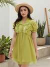 Lunelith SHEIN Lunessa Women Solid Color Ruffle Sleeve A-Line Summer Dress