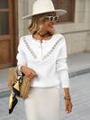 SHEIN PETITE French Style Women Romantic Lace Trim Crew Neck Long Sleeve Sweater Fall Winter Cloth For Women