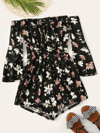 SHEIN VCAY Floral Print Knot Front Off The Shoulder Playsuit