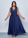 Cravure Plus Size Women V-Neck Versatile Fashion Slim Fit Dress, Suitable For Daily Commute, Party, Autumn/Winter