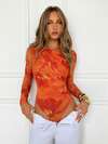 Brillora Women Paisley Print Mesh Long Sleeve Tie Front Asymmetric Hem Top