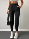 SHEIN PETITE Solid Ruffle Trim Elastic Waist Cropped Pants