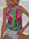 Breezaya Vacation Casual Colorful Printed Halter Neck Shirt