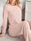 EURMUSE PLUS CURVE Cotton Minimalist Solid Color & Heart Print Long Sleeve Lounge Pajamas Set Black Pajama Sets For Women Womens Black Pajama Set Long Sleeve Pajama Set Women 2 Piece Pajama Set Women