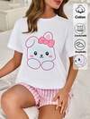 EURMUSE 2pcs Plus Size Contrast Color Stitching Ribbed Pajama Set
