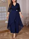 Cravure Plus Size Elegant Slimming Sexy Party Evening Cocktail Off-Shoulder Hollow-Out Sequin Embellished Short Sleeve Jumpsuit Jumpsuits For Woman Party Black Jumpsuit Women Elegant Curve Jumpsuit Black Jumpsuit Plus Size Jumpsuits Elegant