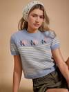 Resyla Women's Casual Colorblock Striped Star Pattern Crew Neck Sweater, Autumn/Winter
