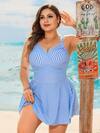Swim Lushoire Women Solid Color Patchwork Sleeveless Swimsuit Dress, Casual Resort Summer
