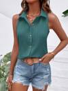 Breezaya Solid Button Front Sleeveless Shirt