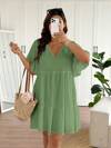 SHEIN Clasi Plus Size V-Neck Short Sleeve Dress, Fashionable For Summer,Summer Dresses For Women
