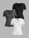 Breezaya Basic Solid Color V-Neck T-Shirt, Casual Vacation Wear