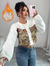 Elenzga Women's Fashionable Autumn/Winter White Wool Fur Pocket Jacket