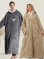 Oversized Hooded Sweatshirt Wearable Blanket, Loose Hooded Blanket, Super Soft Warm And Comfortable Blanket With Front Apple Pocket Design, Suitable For Men And Women, Best Gift With Large Pockets, Comfortable Home Wear