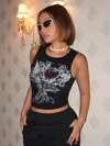 SHEIN ICON Heart & Wing Print Crop Tank Top