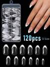 24pcs Medium Long Almond Shaped Minimalist White French Full Cover False Nails, Suitable For Ladies And Girls French Tip Press On Nails Nail Supplies