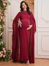 Loomaby Maternity Flounce Collar Flare Sleeve Pleated Shiny Dress,Gender Reveal Dress,Maternity Dress,Baby Shower Dress,Pink Maternity Dress Maternity Photoshoot Dress Dress For Baby Shower Pregnancy Dress Maternity Dress Baby Shower
