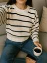 Vivid Style Casual Color Block Gradient Stripe Loose Round Neck Knitted Sweater For Women,Christmas, Christmas Sweater, New Year, New Year Outfit, New Year Attire,New Year Clothes