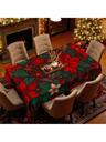 1pc Christmas Tablecloth - Modern Style Tablecloth With Red Wavy Floral Edges (Red & White Flowers), Ivy, Berries, Pine Branches, And Snow Flake Decor - Durable Polyester Fabric - Fits Rectangular & Round Tables, Ideal For Christmas Gifts, New Year Celebrations, Christmas Dinner Table Decor, Christmas Decorations